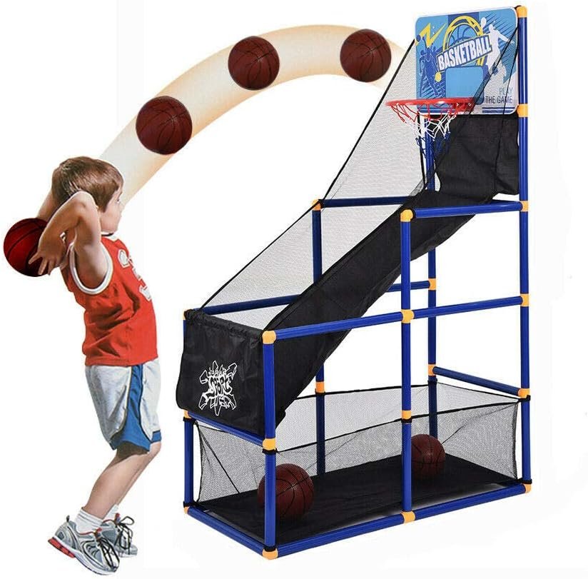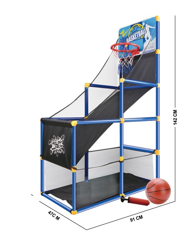Nodrošiniet bērniem jautras un aktīvas rotaļas mājās! Šis saliekamais basketbola spēļu stends ir lielisks veids, kā attīstīt mērķtiecību, veiklību un sacensties ar draugiem vai ģimeni. Īpašais bumbiņas atgriešanās celiņš nodrošina, ka bumbiņa vienmēr ripo atpakaļ – metiet vienu pēc otra bez pauzes!