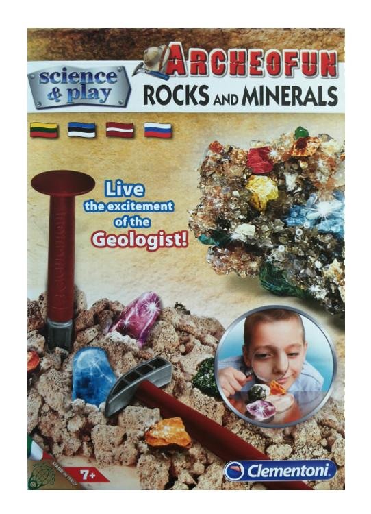 Clementoni Science & Play Archeo Fun Rocks and Minerals ir izglītojošs komplekts bērniem, kas dod iespēju kļūt par jaunajiem ģeologiem. Izņemiet no ģipša bloka īstus iežus un minerālus, iepazīstiet to īpašības un atklājiet dabas noslēpumus. Tas ir jautrs veids, kā apgūt dabaszinātnes, izmantojot praktiskas nodarbības.