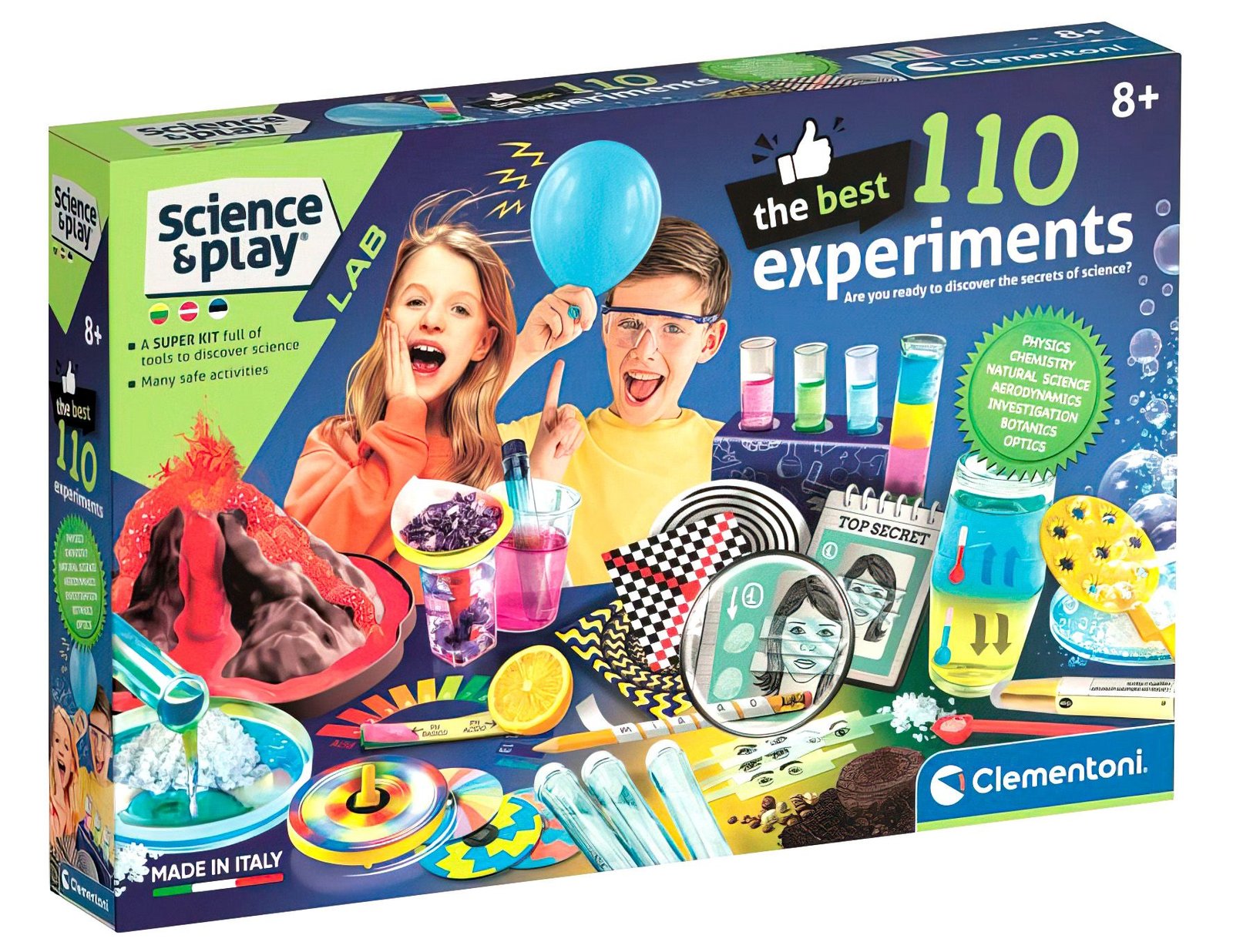 Atklājiet zinātnes pasauli ar Clementoni Science & Play 110 eksperimentu komplektu – pilnu laboratorijas komplektu, kas ļauj bērniem izpētīt fizikas, ķīmijas, dabaszinātņu, optikas un citus likumus. Tas ir jautrs un drošs veids, kā attīstīt zinātkāri un loģisko domāšanu.