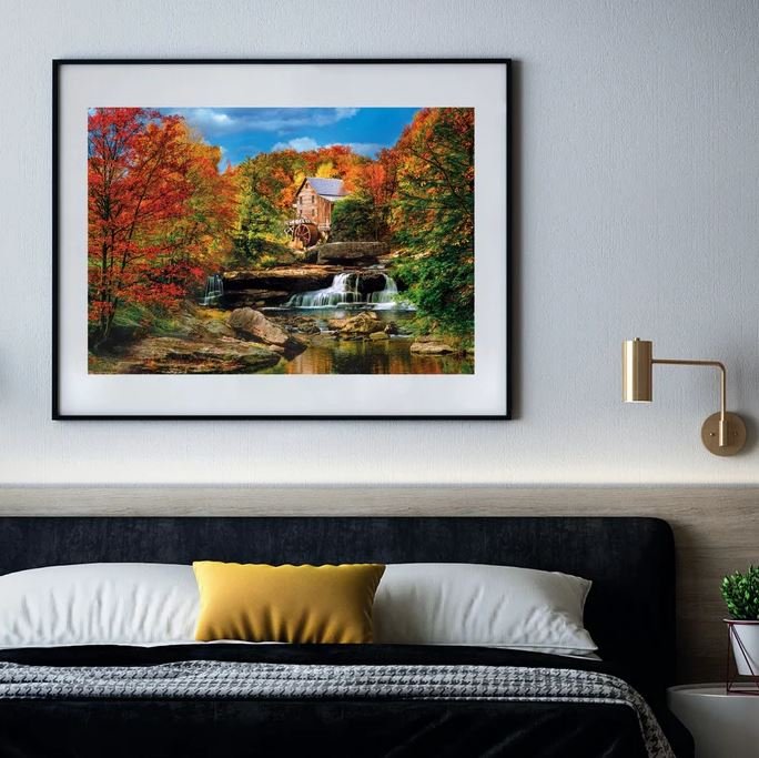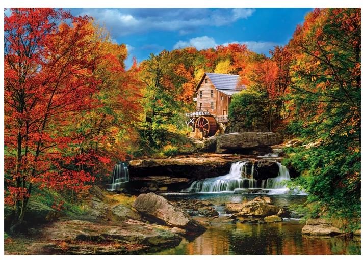Puzle “Glade Creek Grist Mill” no Clementoni augstas kvalitātes kolekcijas pārnes jūs uz skaistu Amerikas rudens ainavu, kur starp koši krāsainiem kokiem un ūdenskritumiem atrodas vēsturiskas dzirnavas. Skatuve ir piepildīta ar mieru un dabas harmoniju – kā pastkarte no krāsainā Apalaču reģiona, kurā iemūžināta silta un mājīga rudens noskaņa.
