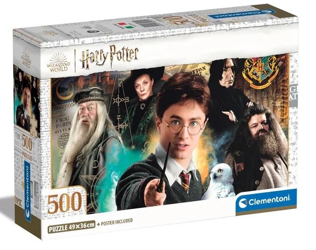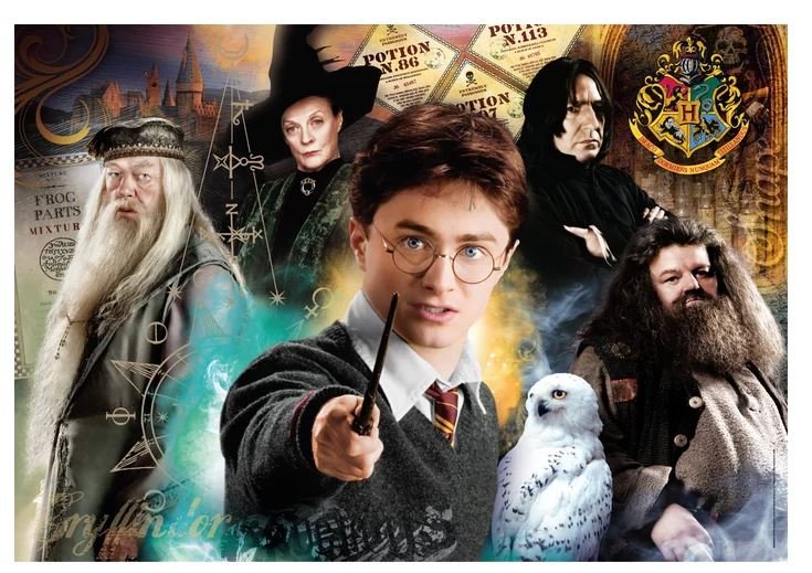 Clementoni High Quality Collection Harija Potera puzle aicina jūs pievienoties maģiskajai Hogvartsas pasaulei. Šajā puzlē satiksiet ikoniskos personāžus – Hariju Poteru, profesoru Dumbledoru, profesorus Minervu Makgonagolu un Severusu Snapu, kā arī Hagridu un uzticamo pūci Hedvigu. Tā ir intensīva, detaļām piepildīta kompozīcija, kas atveido burvju pasaules burvju atmosfēru.