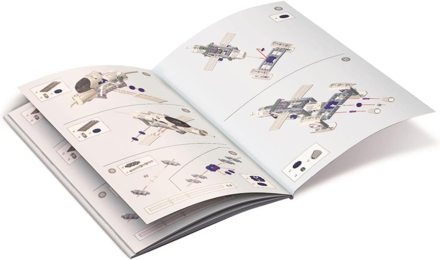 Komplektā ir saules bateriju paneļu, antenu, radara daļu un citu rotējošu elementu replikas.