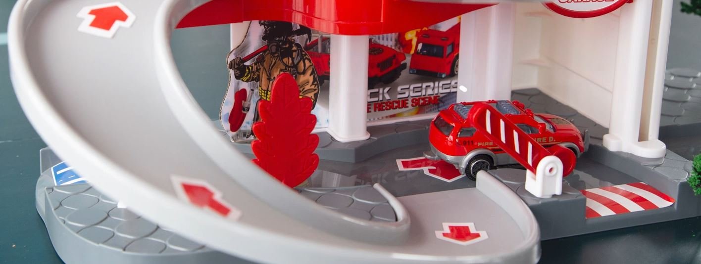 Komplektā iekļautās 3 metāla mašīnas ir izturīgas un piemērotas gan braukšanai augšup pa liftu, gan lejup pa īpašo trasi. Garāžā ir manuāli darbināms pacēlājs, ceļa zīmes un citi piederumi, lai attīstītu bērna iztēli un motoriku.