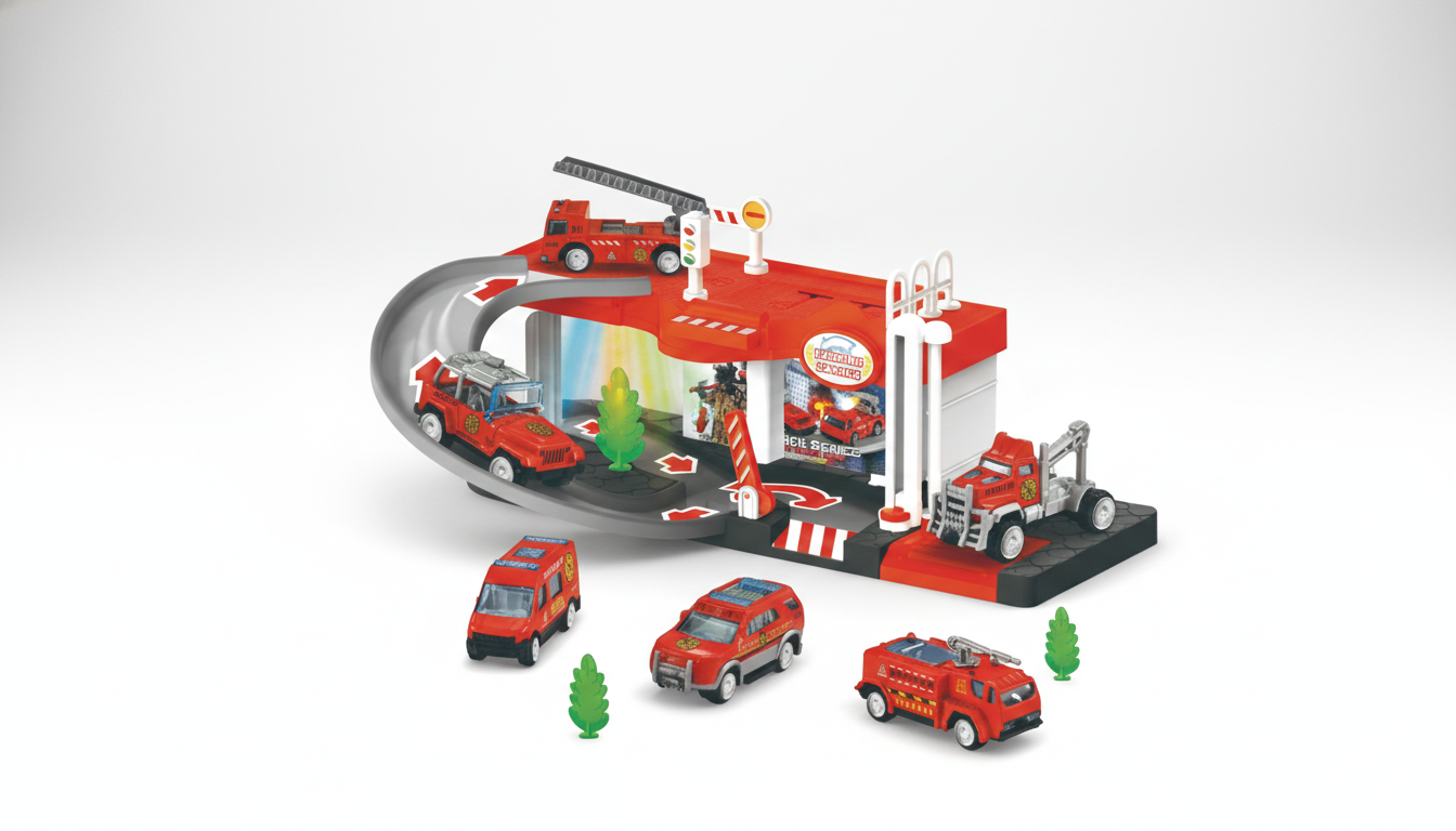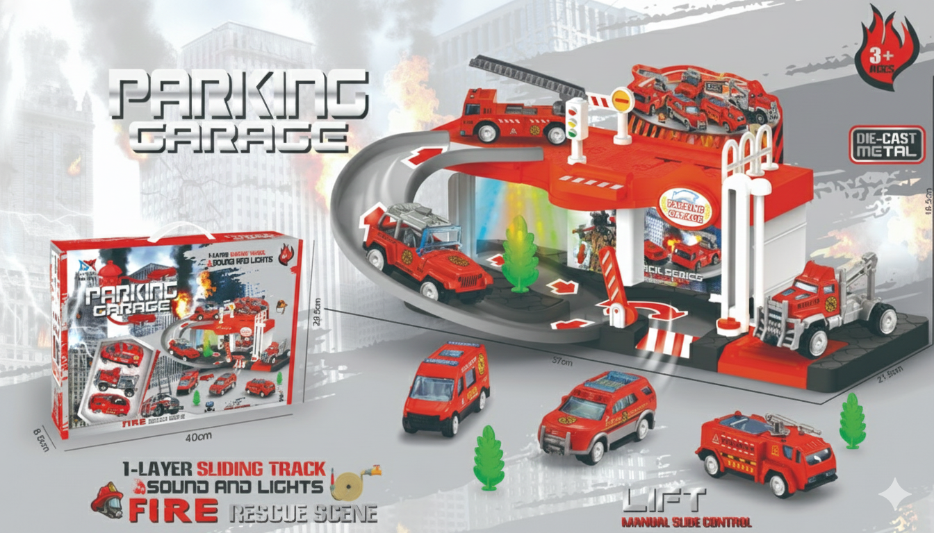 Ugunsdzēsēju garāžas spēļu komplekts ir aizraujoša spēle bērniem, kurā viņi var veidot glābšanas scenārijus, braukt pa rampu, pacelt automašīnas lifta pacēlājā un izpildīt ugunsdzēsēju misijas. Komplektā ir gaismas un skaņas efekti, kas padara spēli vēl reālistiskāku.