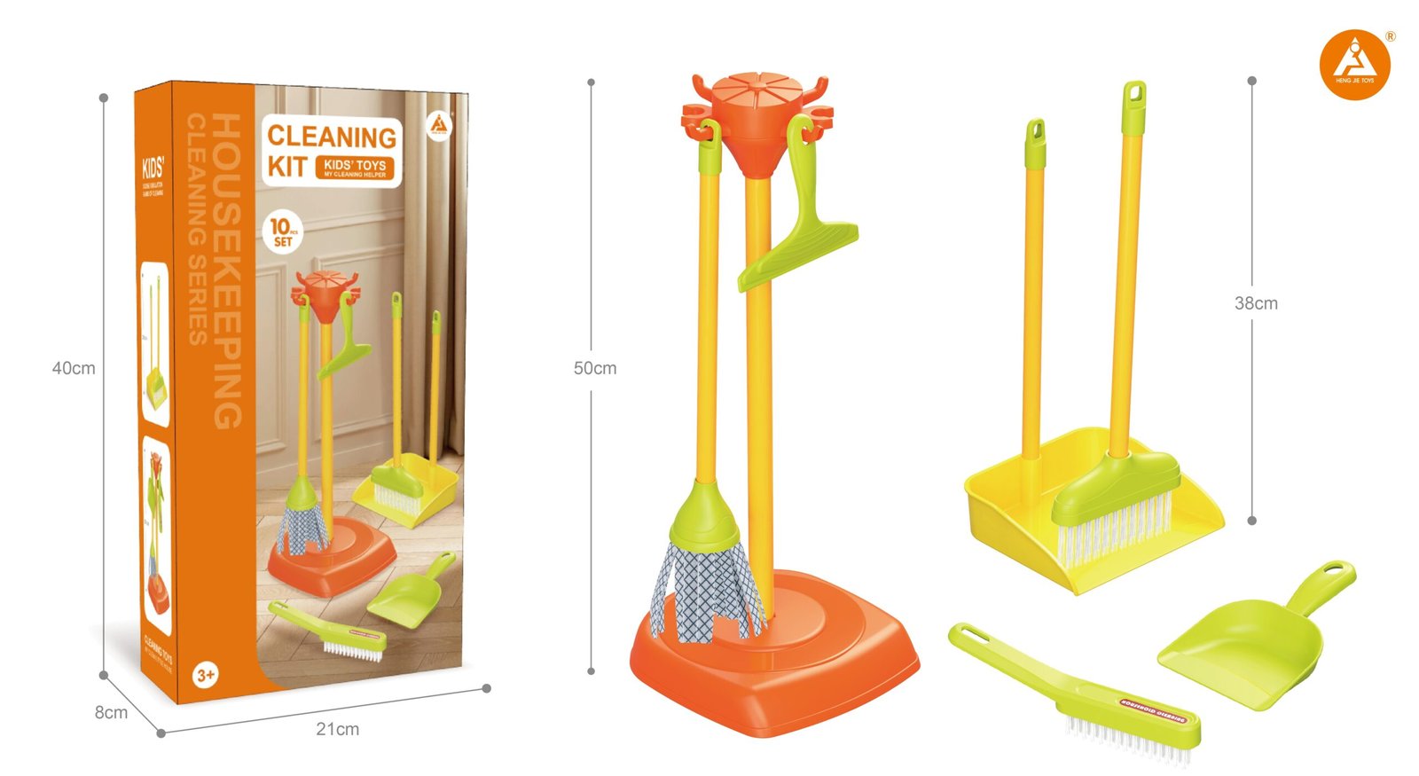 Rotaļlietu tīrīšanas komplekts palīdz bērniem no 3 gadu vecuma rotaļīgā veidā apgūt sakoptību, motoriku un roku koordināciju. Spilgtie un vieglie tīrīšanas rīki ir ērti mazajām rociņām, veicina patstāvību un iesaistīšanos lomu spēlēs. Izgatavots no drošas, izturīgas plastmasas.