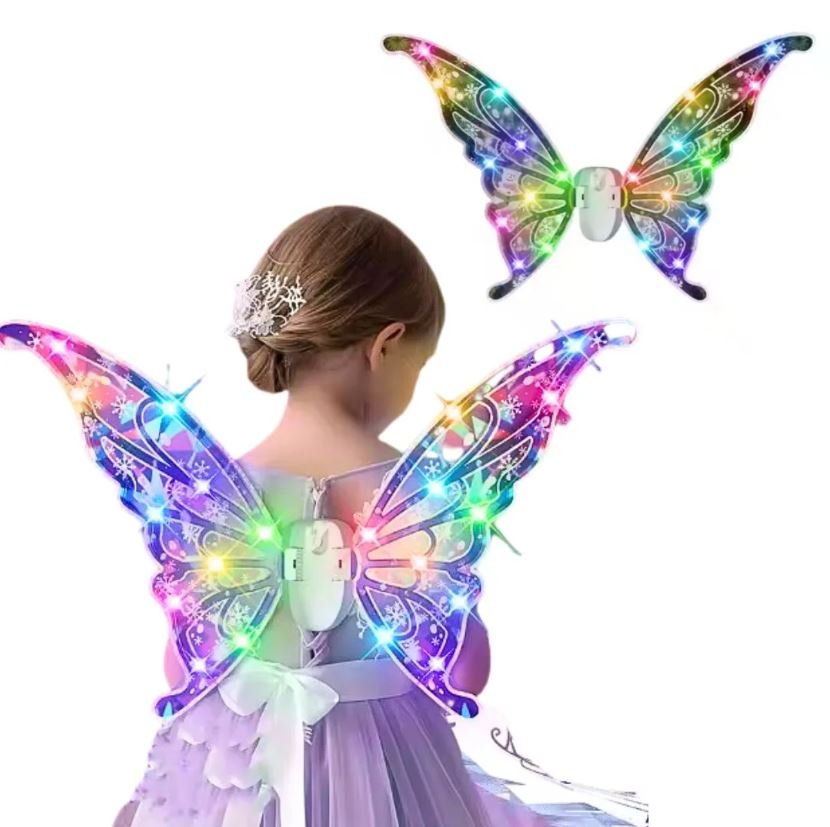 Sniega gara spīdošie pasaku spārni ir jautrs aksesuārs bērniem, kas iedegas, atskaņo mūziku un kustina spārnus. Spārni ir viegli piestiprināmi ar siksniņām, tāpēc tie ērti pieguļ mugurai un netraucē kustēties. Lieliski piemēroti fotosesijām, ballītēm vai rotaļām mājās.