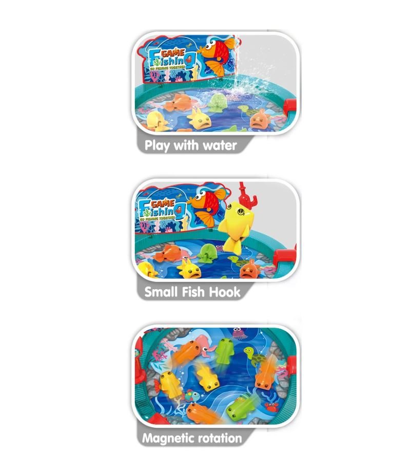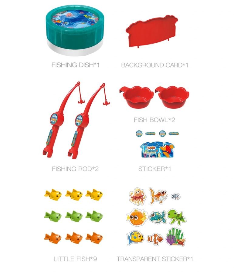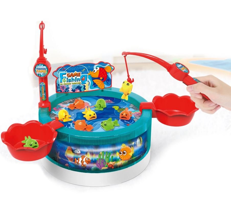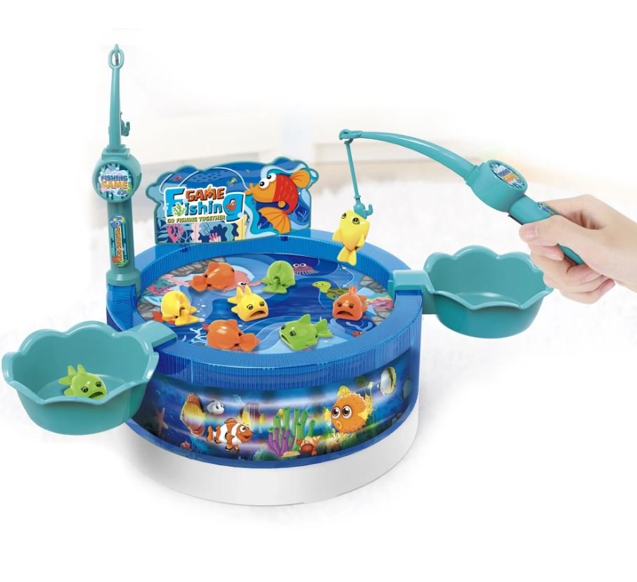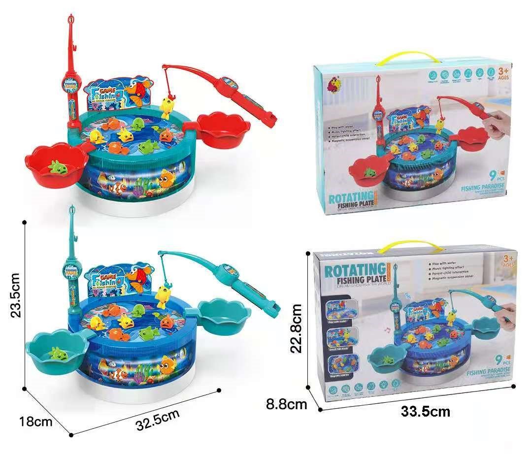 Interaktīvā spēle “Rotējošā makšķerēšanas plate” ļauj bērniem jautri pavadīt laiku, ķerot krāsainas magnētiskās zivtiņas no rotējošā “dīķa”. Komplektā ir divas makšķeres un divi ķeramie kausi, tāpēc šī ir spēle diviem. Spēlei ir gaismas un skaņas efekti, kas palīdz radīt vēl jautrāku atmosfēru.