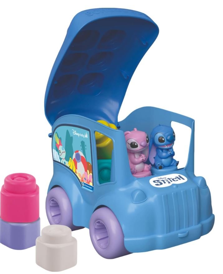 Minkštas ir saugus Clemmy serijos autobusiukas su mylimais Disney personažais Stitch ir Angel – tai žaislas, sukurtas tyrinėti, statyti ir žaisti. Mažyliui patiks dėti minkštas kaladėles į autobusą, statyti ant stogo platformos ir leistis į nuotaikingus „kelionių“ nuotykius.