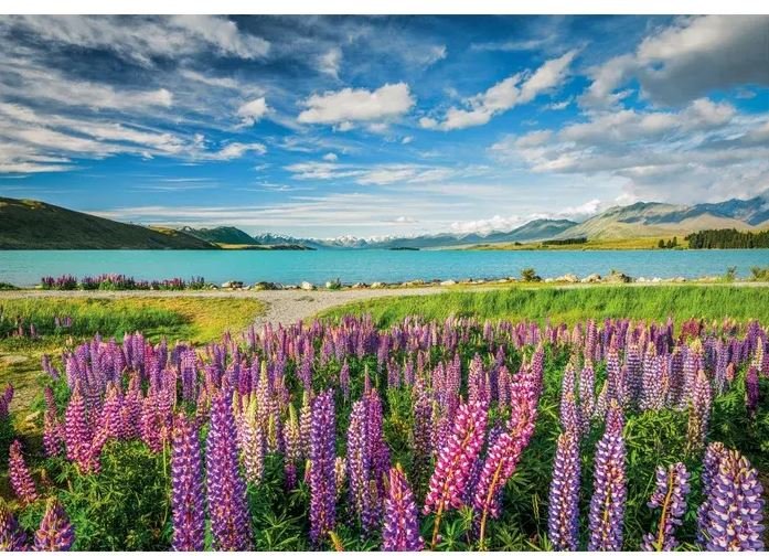 Clementoni High Quality Collection dėlionė „Lupins at Lake Tekapo“ nukelia į vieną įspūdingiausių Naujosios Zelandijos gamtos kampelių. Švelniai banguojančios kalnų grandinės, tyras žydras Tekapo ežeras ir pakrantėje žydintys ryškūs, purpuriniai lubinai sukuria nepakartojamą harmonijos ir gamtos grožio akimirką.