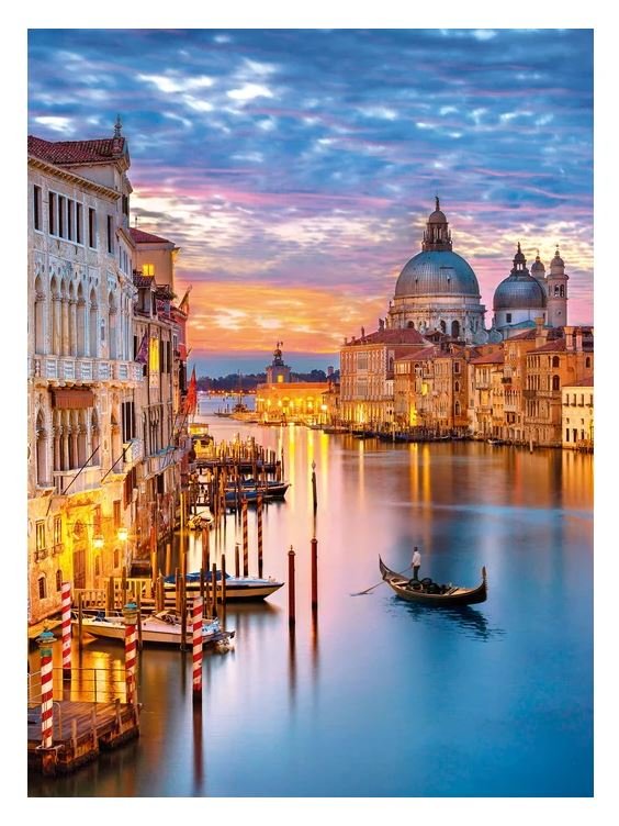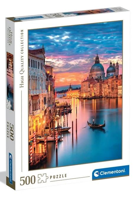Clementoni High Quality Collection dėlionė „Venecijos vakaras“ atveria duris į švelnų saulėlydžio magijos ir kanalų miesto ramybę. Šiltos vakarinių žvakių šviesos, istorinių pastatų atspindžiai vandenyje ir kylančios gondolos kuria jaukią, šiek tiek nostalgišką nuotaiką — tarsi stovėtum prekybinių gatvių kampelyje ir žvelgtum į tylų, žibančią Veneciją.