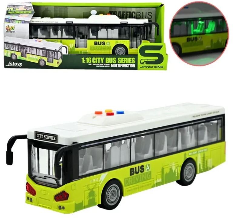 Tikroviškai atrodantis inercinis miesto autobusas suteiks vaikams dar daugiau smagaus žaidimo su transporto tema. Šviesos, garsai ir darinėjamos durys žaidimą paverčia dar įdomesniu bei interaktyvesniu.