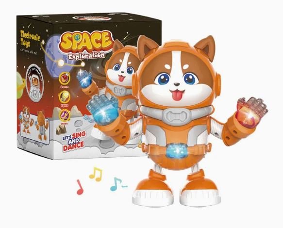 Šis linksmas kosmonauto formos šuniukas – judrus ir žaismingas muzikinis žaislas, kuris greitai patraukia vaikų dėmesį. Žaislas juda, šoka, groja muziką ir šviečia įvairiomis spalvomis, todėl žaidimų laikas tampa dar aktyvesnis ir smagesnis.