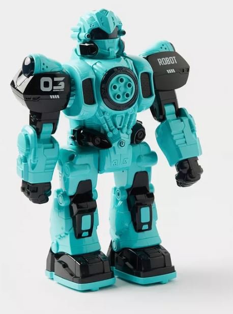 R/B valdomas robotas su šaudymo funkcija – įspūdingas žaislas vaikams, mėgstantiems kovas ir interaktyvų veiksmą. Robotas juda visomis kryptimis, gali vaikščioti, slysti, suktis, šaudyti šoviniais, kalbėti angliškai ir turi ryškius šviesos bei garso efektus.